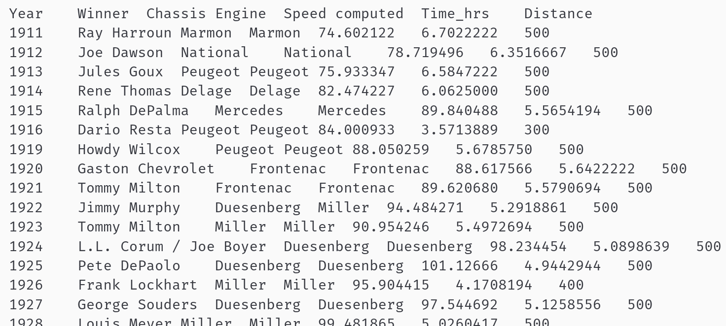 Year Winner Chassis Engine Speed.computed Time_hrs Distance